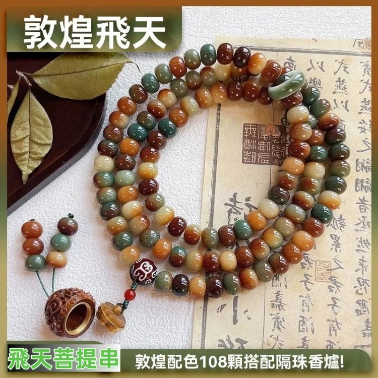敦煌飛天菩提手串 撫過108顆不同能量場的菩提子 潤澤觸感撫平情緒 鎏金飛天墜隨動輕晃 擁有獨屬靜心時刻